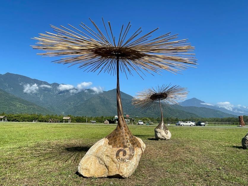 坐落中央山脈與海岸山脈的縱谷森林園區,遼闊無垠的綠地,給了達鳳「種植」作品的養分;翱翔在空中的八角風箏,其隨風搖曳的無拘無束、自由奔放