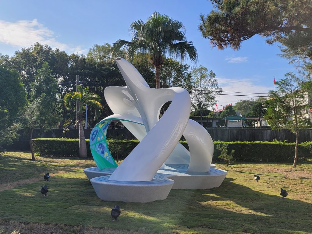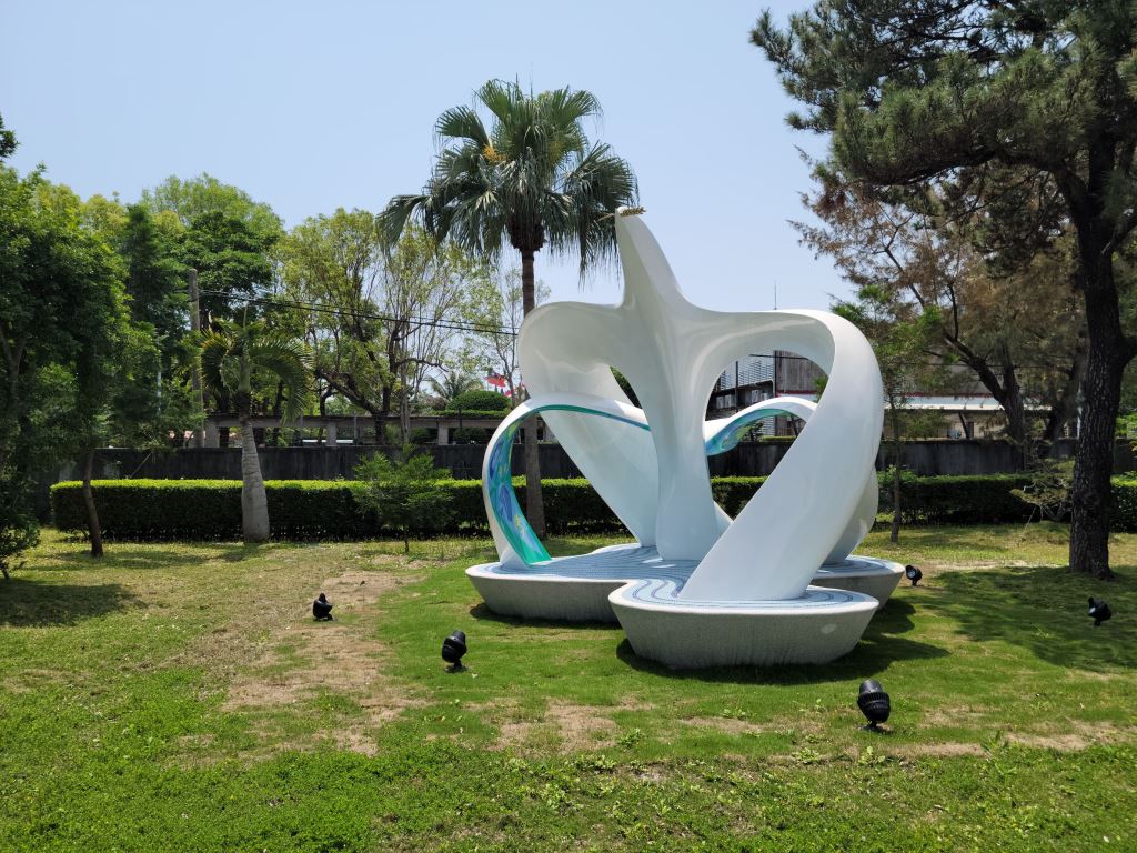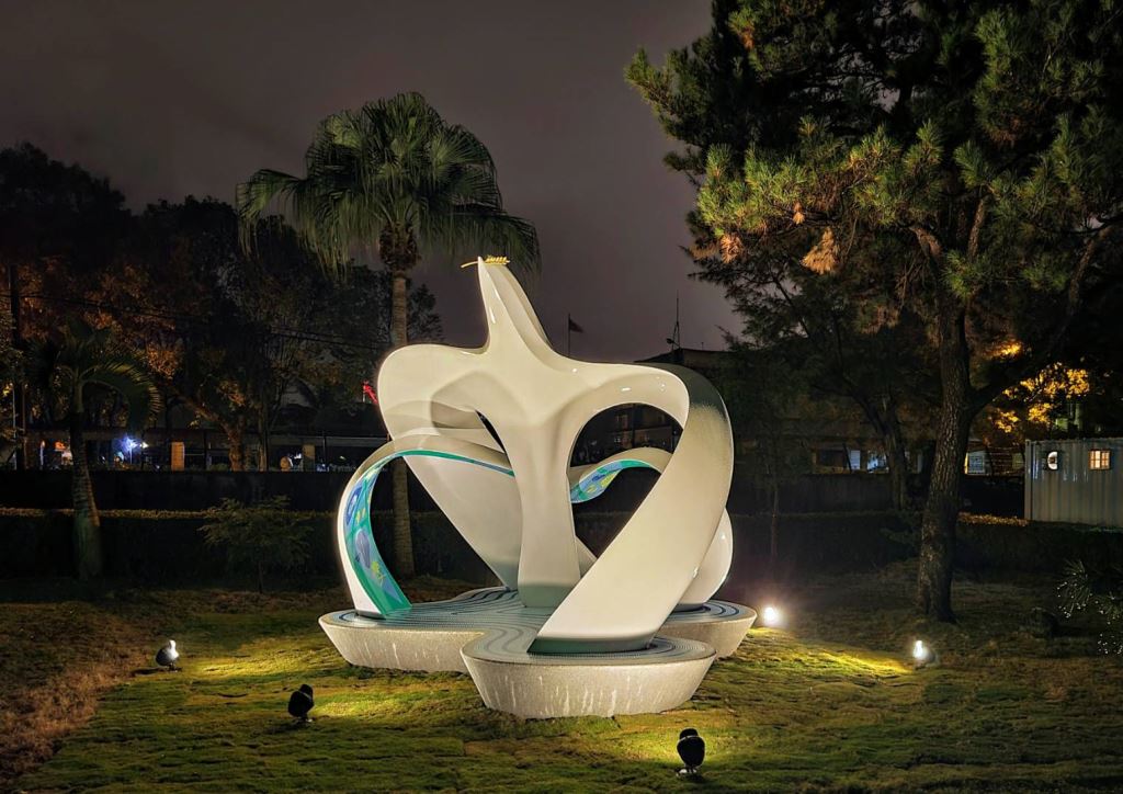 策劃單位:花蓮縣警察局。策劃理念:以警徽之和平鴿為創作發想,象徵警察維持公共秩序,守護社會治安與民眾安全。作品說明:花蓮為好山好水的城市,將山水環抱融入警鴿意象,本作品以白色與藍色為主,藉此呼應警察專業廉能與犧牲奉獻精神,彰顯警察親民愛民護民的形象,讓接近作品的民眾能感受大自然孕育萬物的奧妙,展現出警民一心的精神。Hualien is a city with lovely mountains and waters. The surrounding mountains and waters are integrated into the police pigeons. This work is mainly blue and white, thereby echoing the professional, incorruptible, capable, sacrificial, and dedicated spirit of the police; highlighting the image of the police as people who are close to, love, and protect people; letting people who approach this work feel the wonders of nature, which gives birth to everything; and showing the spirit through which the police and people are shoulder to shoulder.