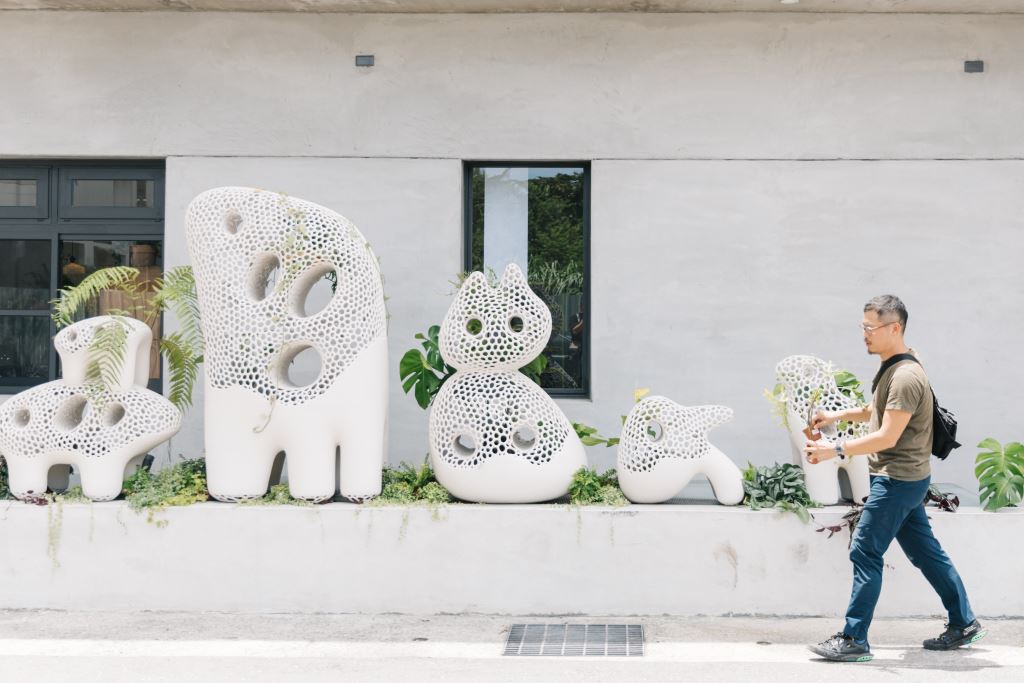 Inspired by stones and mines in Hualien, it breathes life into culture to create a sculpture in natural and organic forms. Plants can grow in holes on the sculpture. As plants grow on the structure, it becomes a symbiotic organism. This ecosystem uses stacked stones and pebbles to symbolize how Hualien can develop enriching cultural landscapes from hard rocks.
