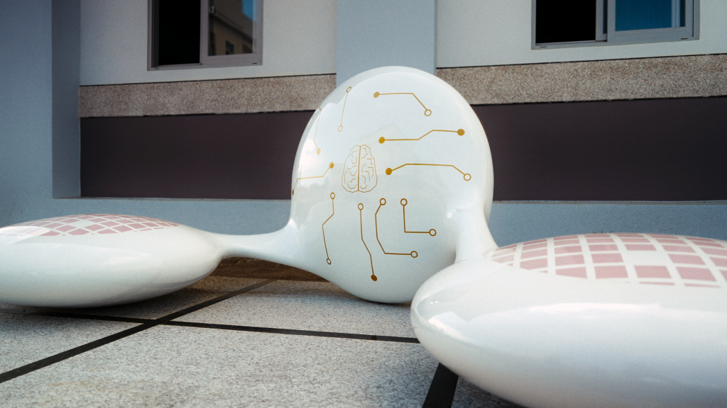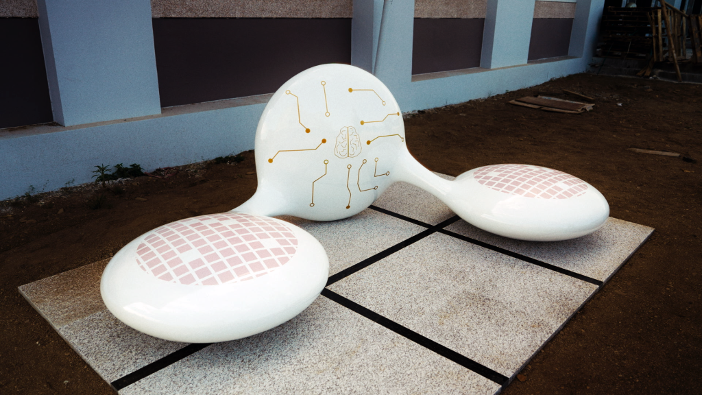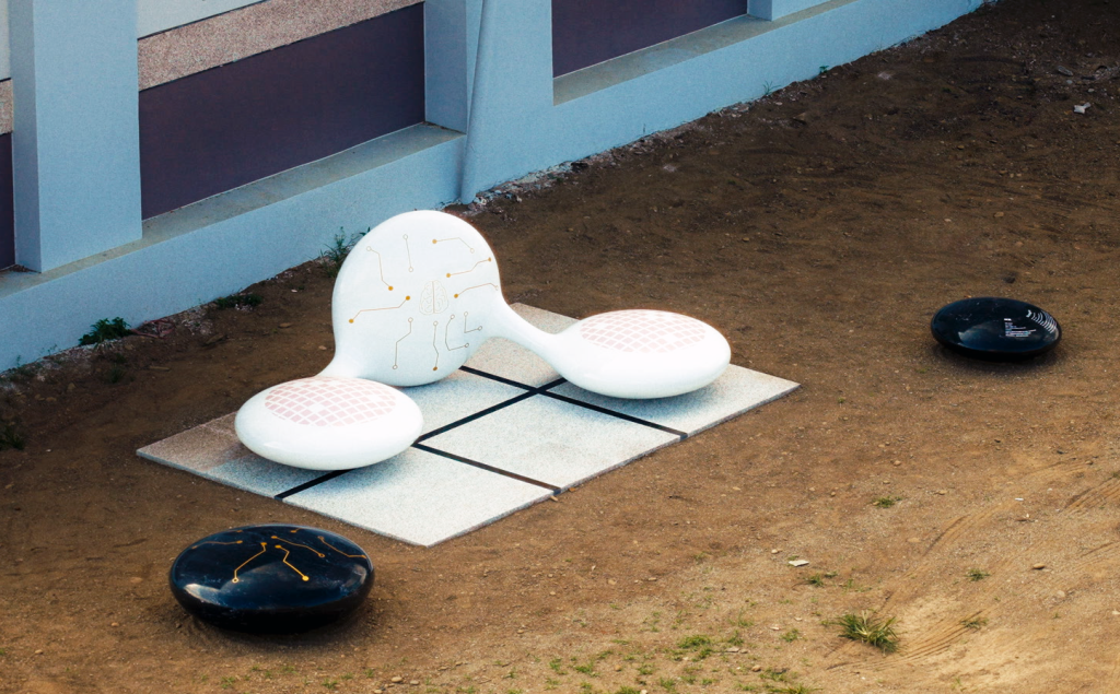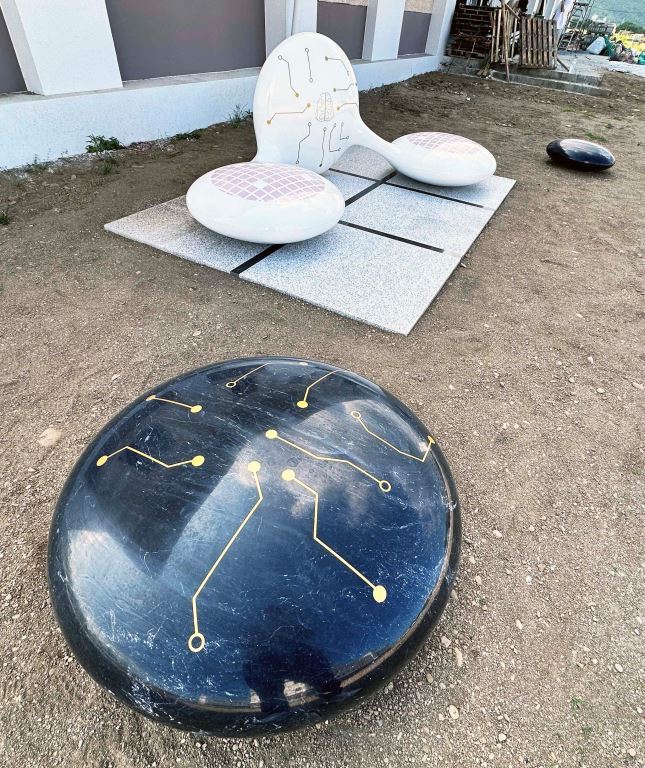 本創作以圍棋的佈局轉換為創作題材,當中賦予科技符號,彰顯國防科技結合兵推下的運籌帷幄。