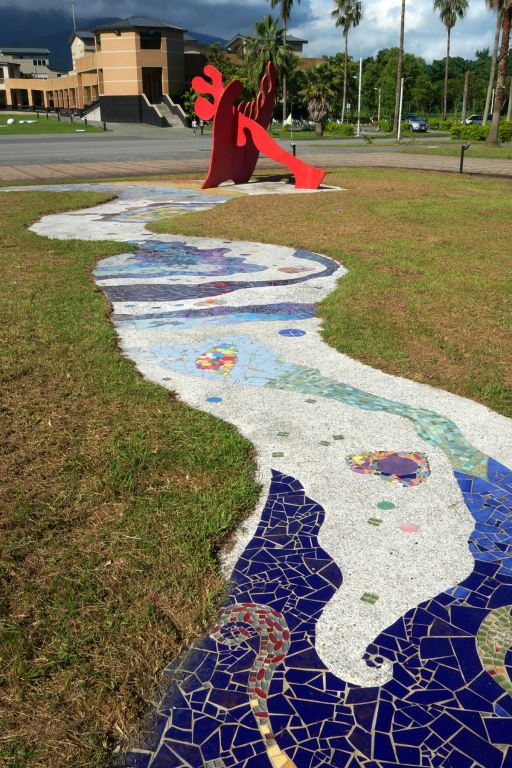【東華廣場自由詩篇三部曲】 以花蓮在地自然紋理、資源素材、及人文風情呼應本校創校精神「民主、自由、創造、卓越」 ,創造【新東華】未來之新意象,溶入東華人氣質、記憶與認同,成為東華大學獨有的環境藝術。