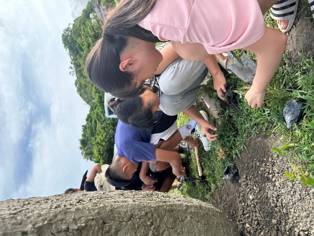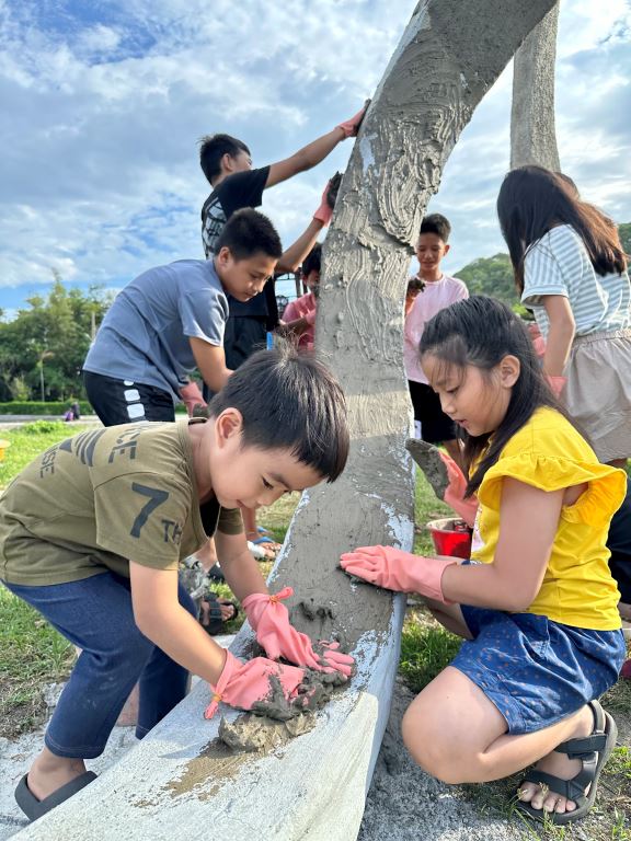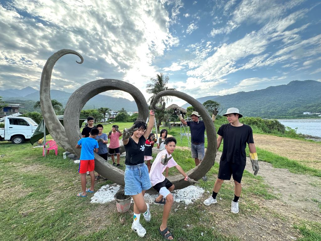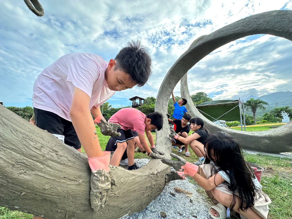 第一場:於作品現地安裝製作時,田土塑形作品主體階段,邀集部落國 小學童、家長一起參與泥塑工作。