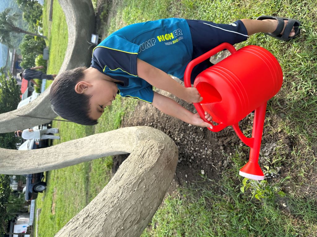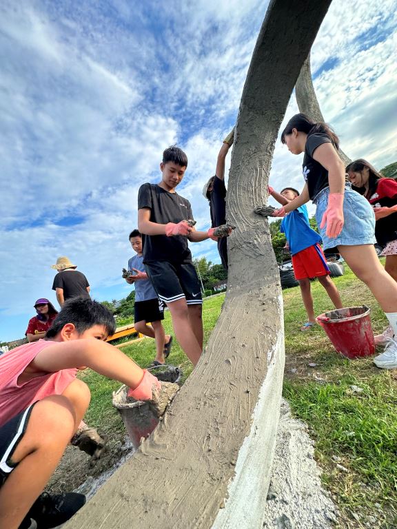 二、第二場:設置完成後,邀集部落居民在作品主體周圍種植攀爬植物爬牆虎