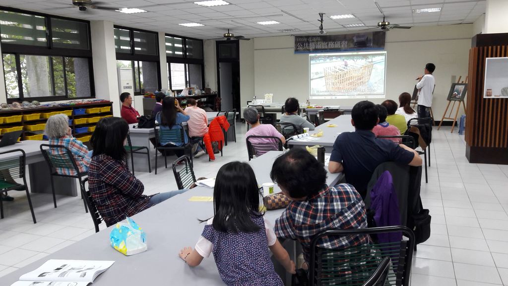 下午由本縣璞石藝術創始人邱創用老師及林美佐老師一起分享公共藝術創作過程及璞石藝術工程歷年執行成果,並讓學員親自體驗製作璞石文鎮(瓢蟲造型)。最後一堂課則由綠果創意國際有限公司負責人黃裕榮介紹公共藝術新美學與民眾參與的教育推廣活動,透過些微的民眾參與計畫,就能讓公共藝術更感動、更美麗!