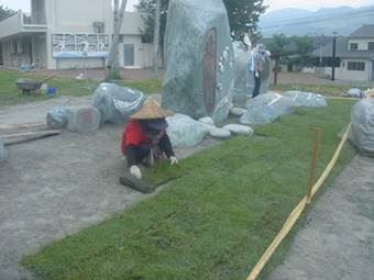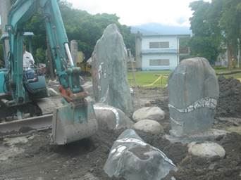 1999年玉里鎮公所為了展現地方文化特色,委託本人邱創用在玉里車站前廣場,以地方特有的石頭蛇紋石、片岩、石灰石為主要媒材,並以地方風情為題材,創作了一系列璞石藝術作品及周邊石藝景觀。2015年,玉里鎮公所配合車站改建工程,將站前廣場規劃為停車場,原作品經討論現場會勘後,決定遷移至玉里鎮民廣場,放置地點距璞石藝術館約五十公尺,可與璞石藝術館連成一帶狀緊鄰人行步道廣場,形成新的文化聚落。