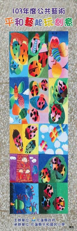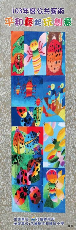 花蓮縣壽豐鄉平和國民小學金進行校舍補強工程,藉此融入公共藝術,落實公共藝術教育。為讓校園與公共藝術產生密切聯結,我們以「友善環境」為發想,連結社區農業與學童的生長背景,轉化為學校對社區的關懷,創作「平和藝起玩創意」。