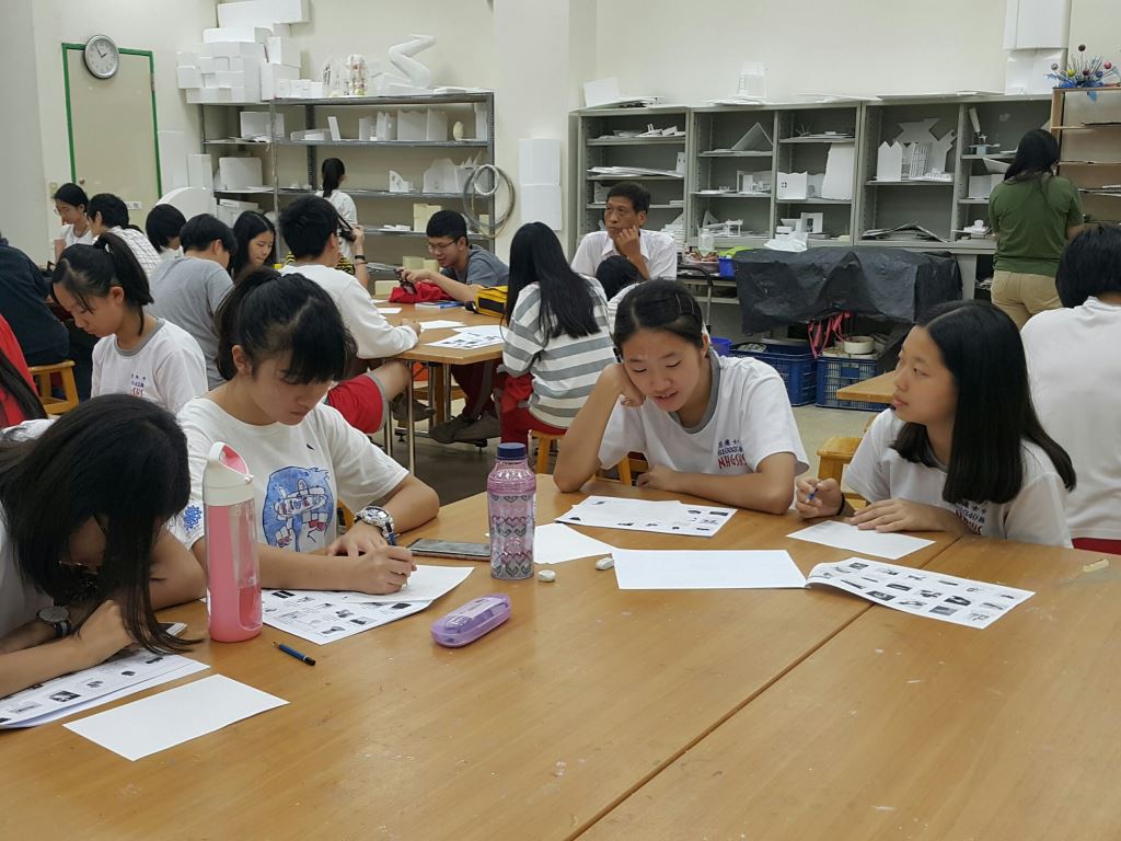 下午由蔡文慶老師進行藝術創作工作坊,值得一提王祥熏老師特別帶領未來藝術家們,花蓮女中美術班同學參加。學員透過了解公共藝術的設置概念與過程,並經由公共藝術個案的研究,學習公共藝術之模型製作,培養學員的藝術創作能力。