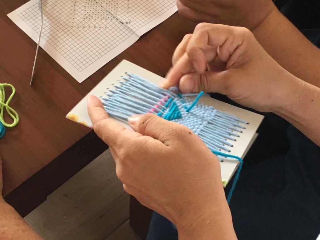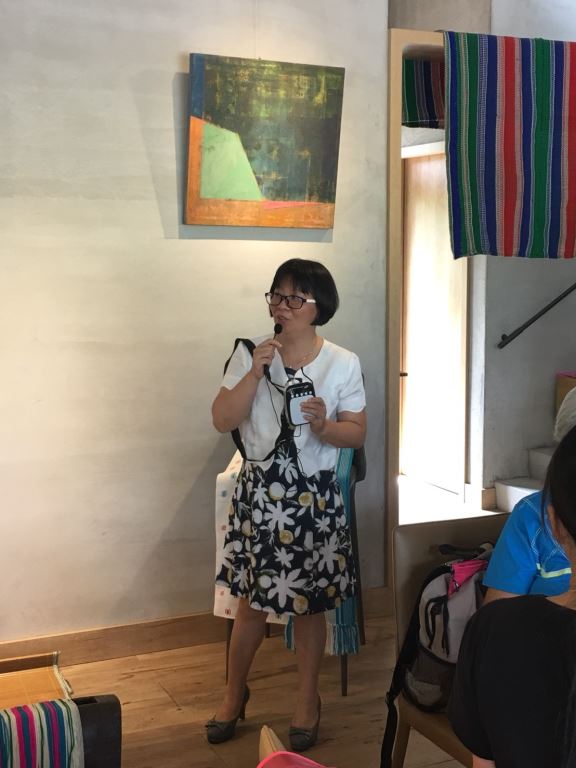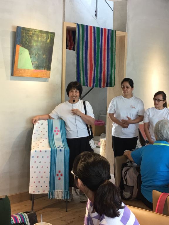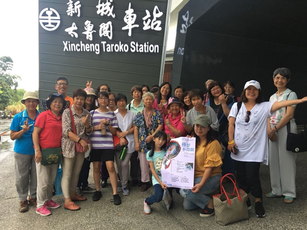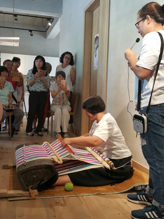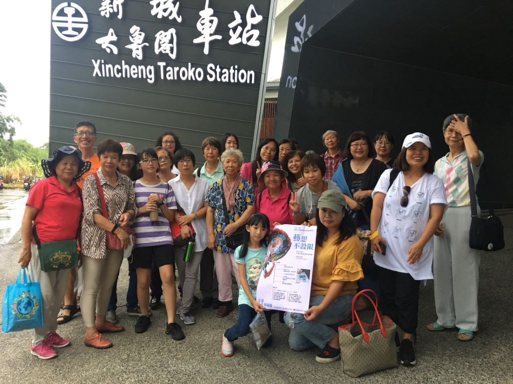 本次研習上午課程特別邀請秀林鄉織女宋美枝老師帶領學員手作編織,體驗太魯閣族的織布技藝及藝術創作的多樣性。下午走訪新城太魯閣車站導覽公共藝術作品,由作者林介文講述藝術作品創作經驗及過程,讓學員對公共藝術有更深認識而親近藝術。