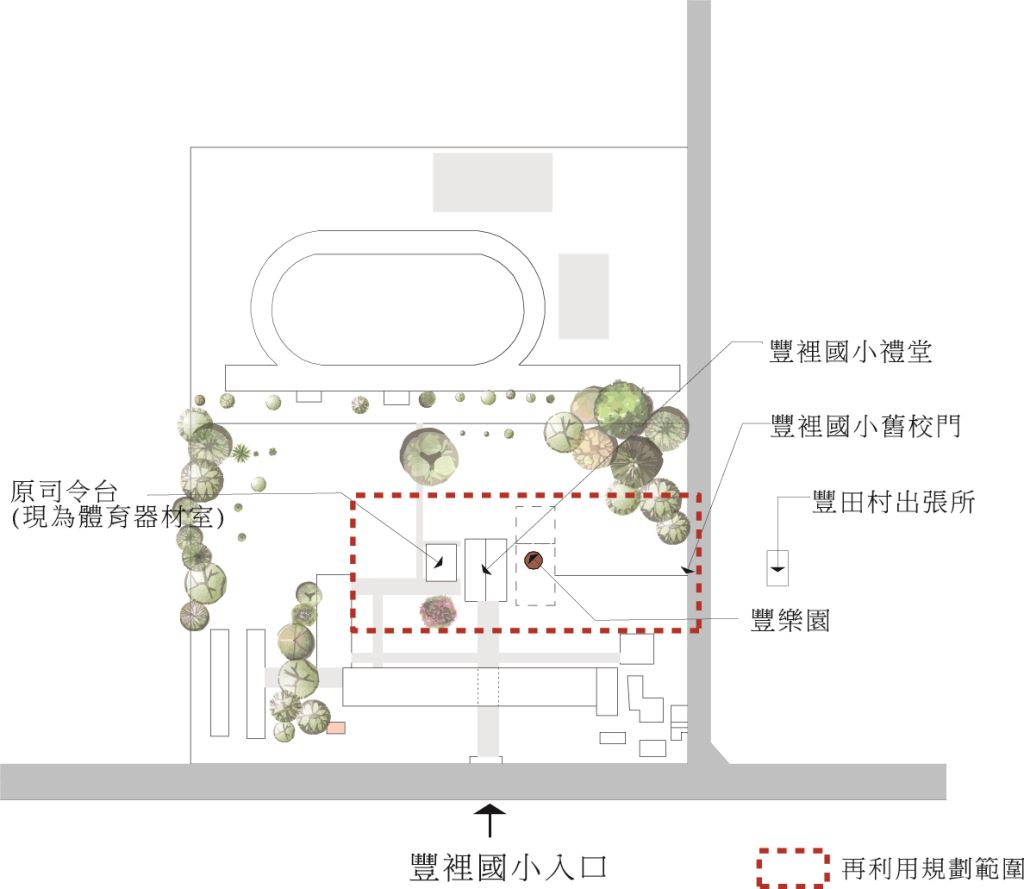 今日所見豐裡國小禮堂興建於昭和年間,為花東地區僅存之日治時期官營移民村階段校園建築,且持續利用至今,具稀少性與代表性,花蓮縣政府於98年8月13日公告為本縣歷史建築。本計畫教育推廣對象為豐裡國小師生及豐田地居居民,透過禮堂布幕設置、製作明信片等工作,美化歷史建築空間與推廣文化資產之美。