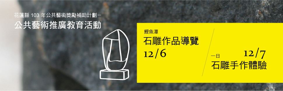 花蓮素以石雕聞名,縣境內更有許多大型石雕作品,本計劃本於公共藝術推廣教育之意,希冀導引一般民眾對於石雕作品有更深入的認識,進而培養美學意識,增益藝文風氣,提升一般民眾的藝術生活品質。