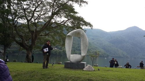 活動內容:在專業講師王尊賢的帶領下,學員認識鯉魚潭石雕公園內的大型國際石雕創作營作品。