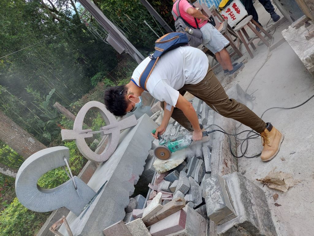 姜憲明老師曾參與花蓮國際石雕藝術季戶外創作營,與花蓮結下深厚情誼。 -