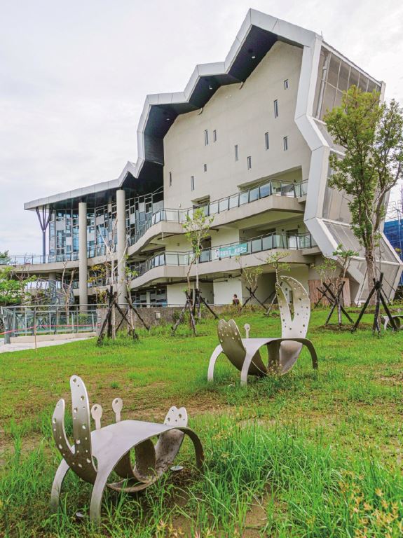 命名!命名!命名!真的很重要。兩位老師不約而同都點出。圖中為台江文化中心公共藝術作品,名為大管仙仔招你入坐。 -