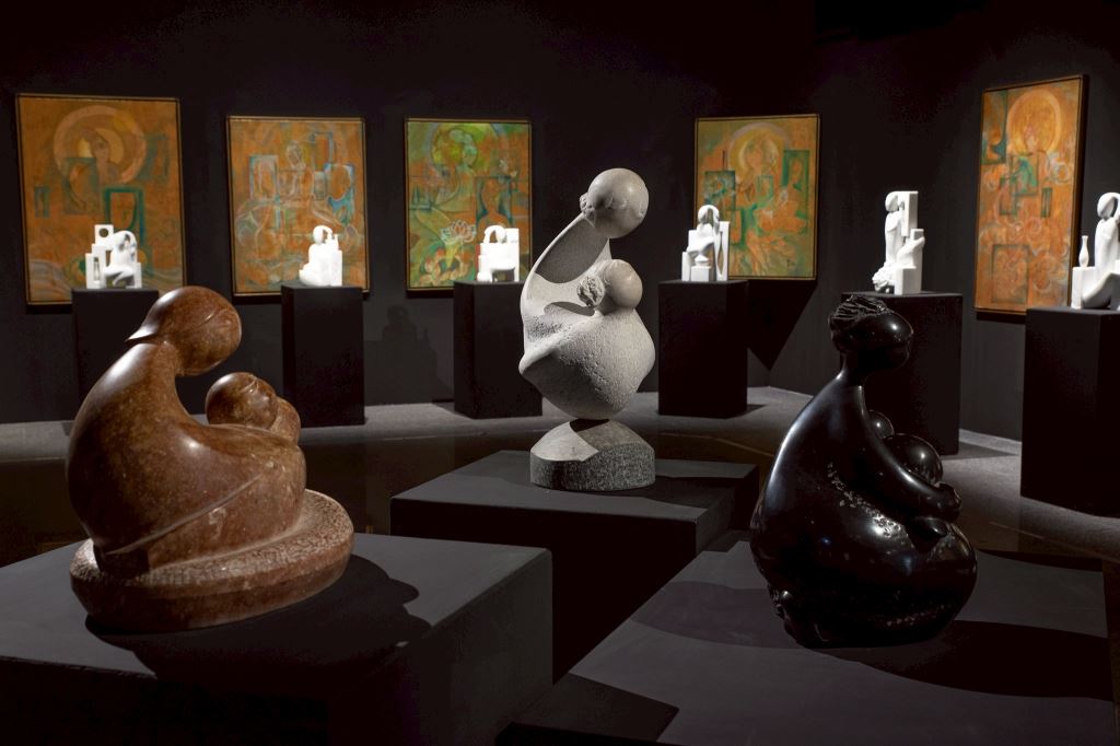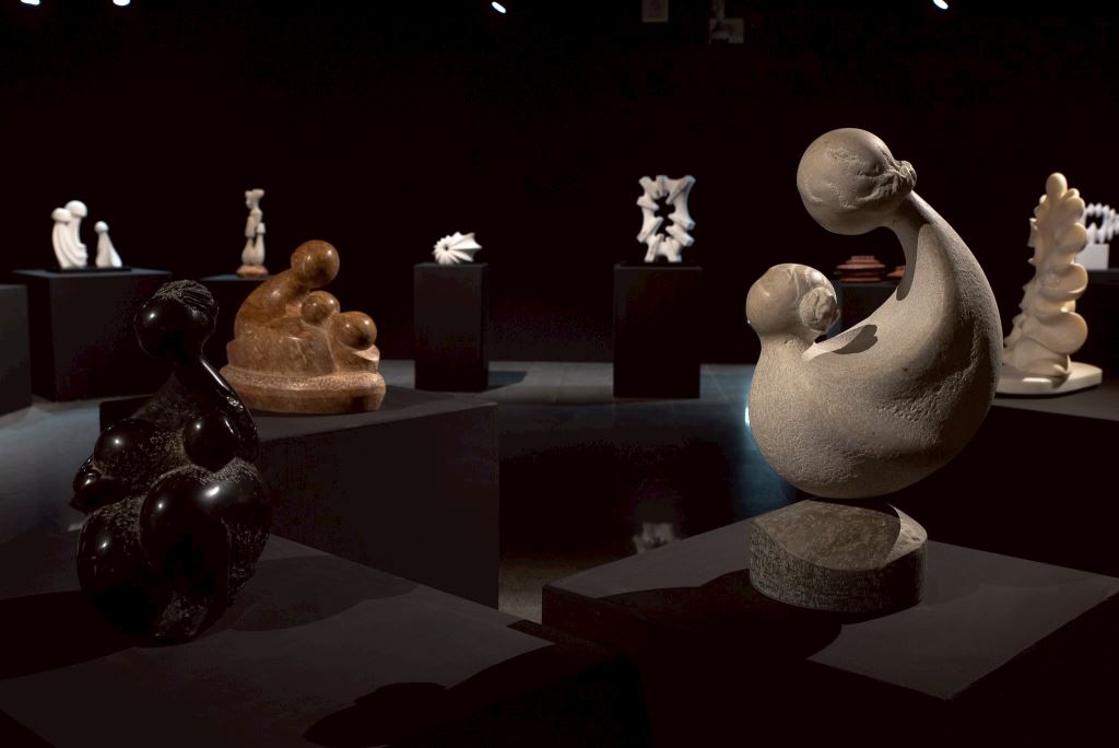 石雕作品,與畫作一同於展場陳列