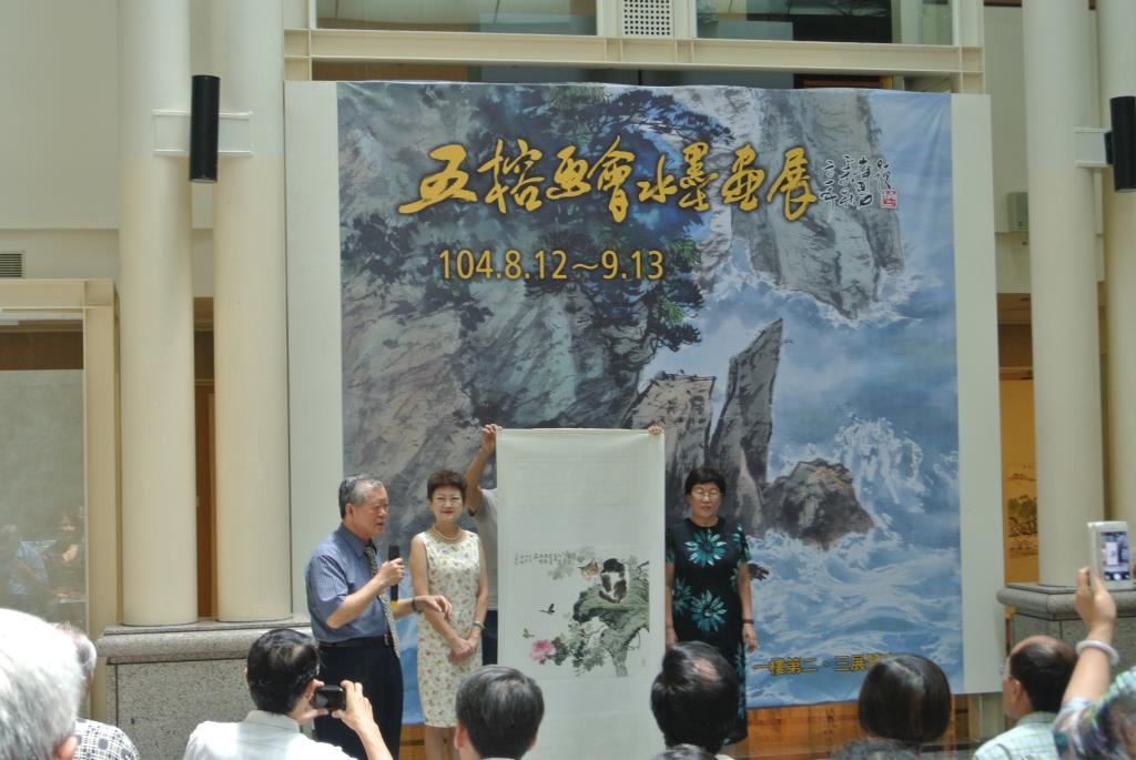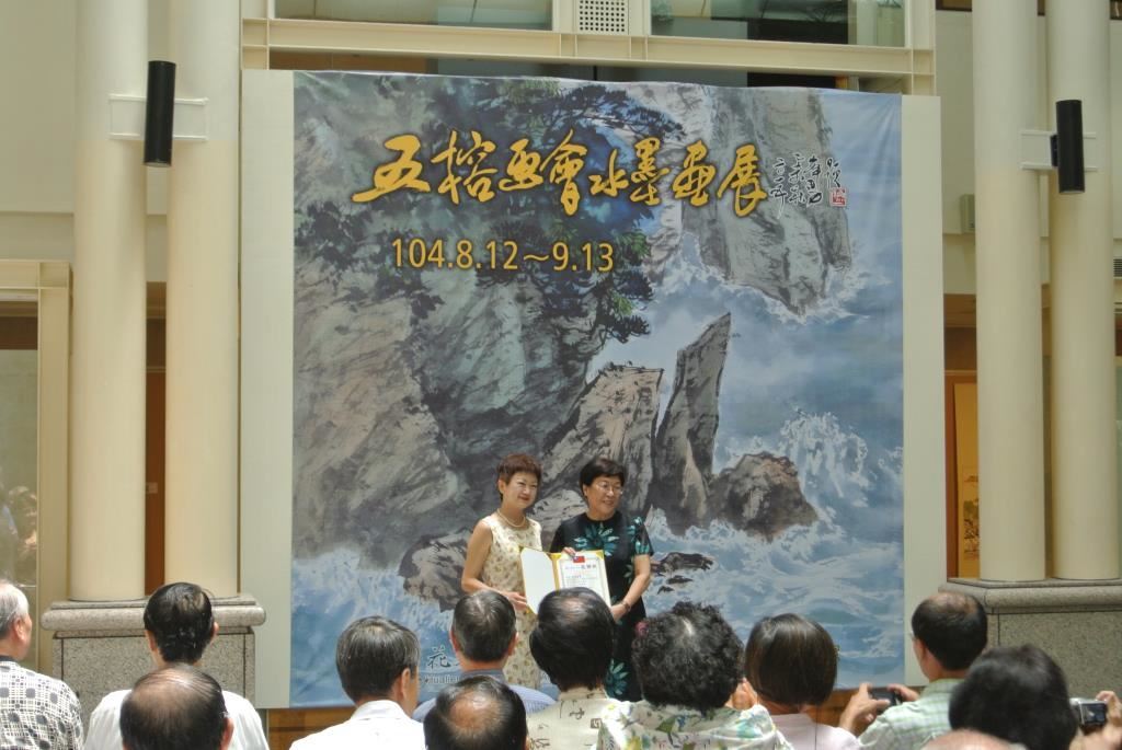 蘇峰男教授介紹雷涵琳理事長贈送文化局之畫作