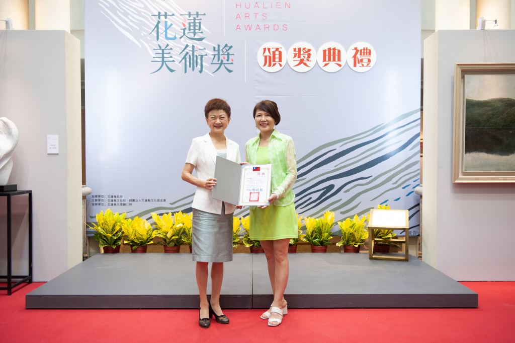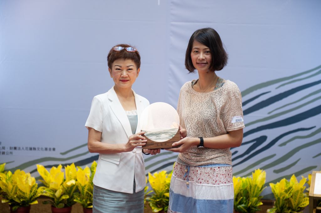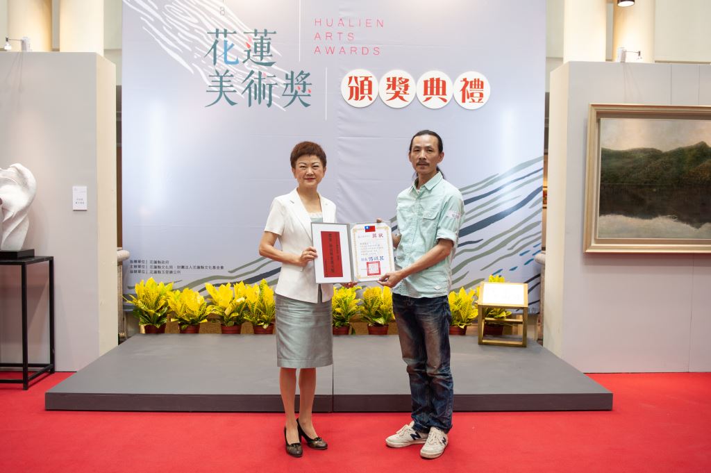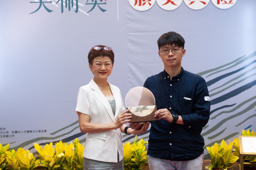 立體造型花蓮獎得主邱裕欽太太代為領獎