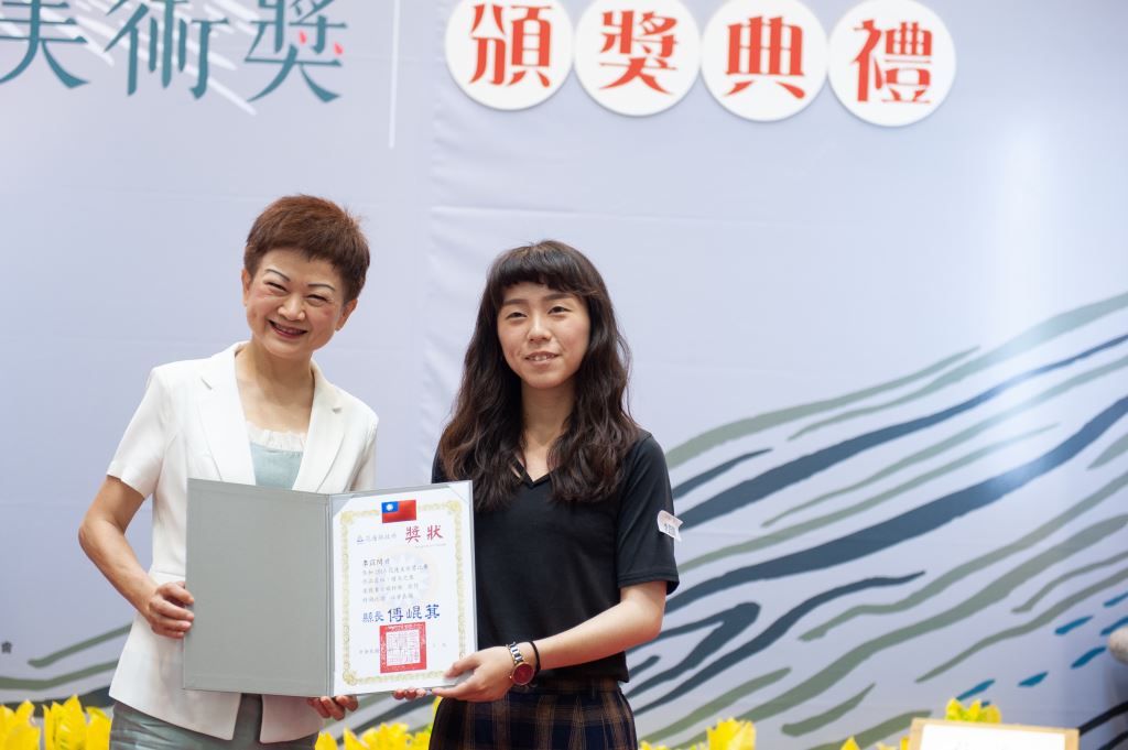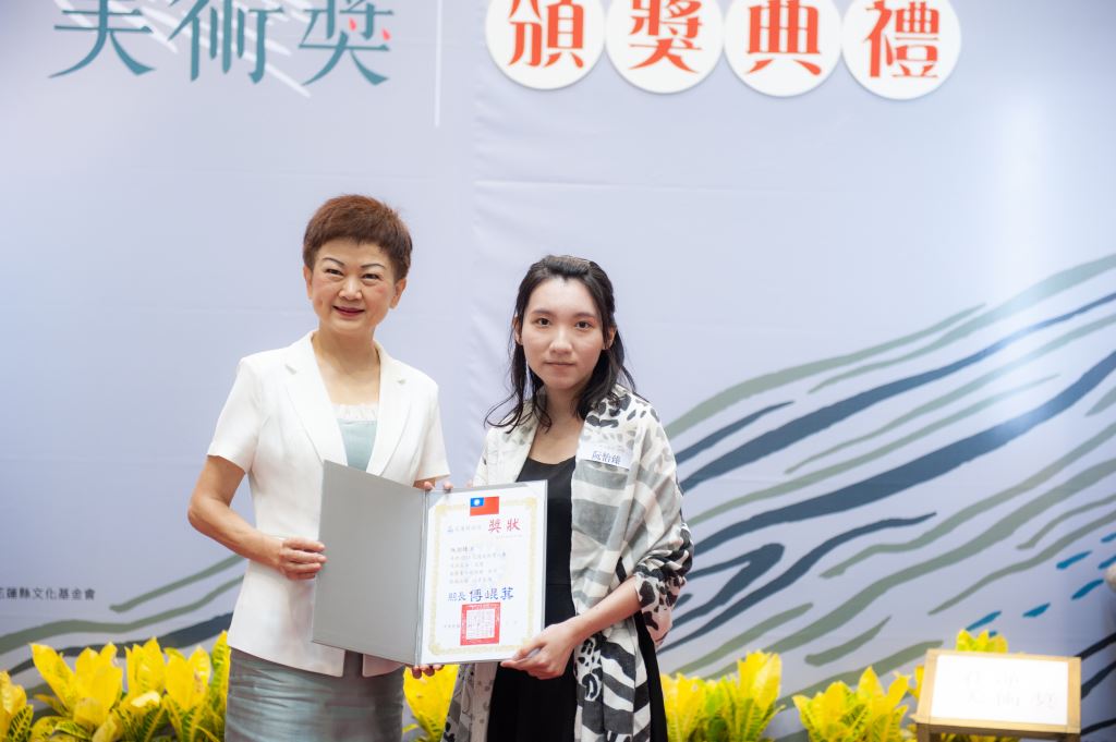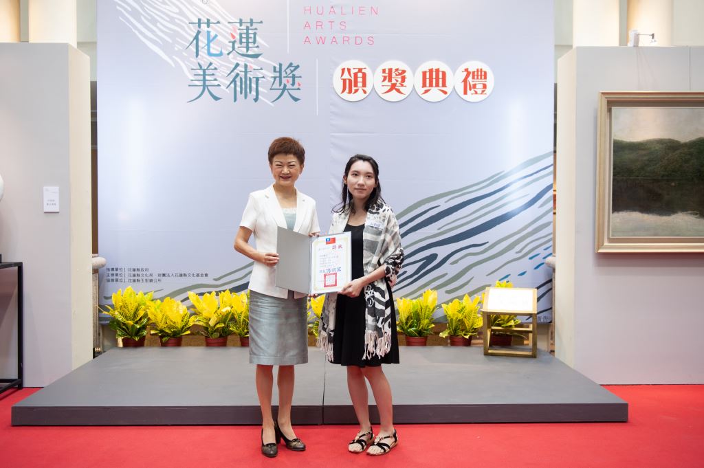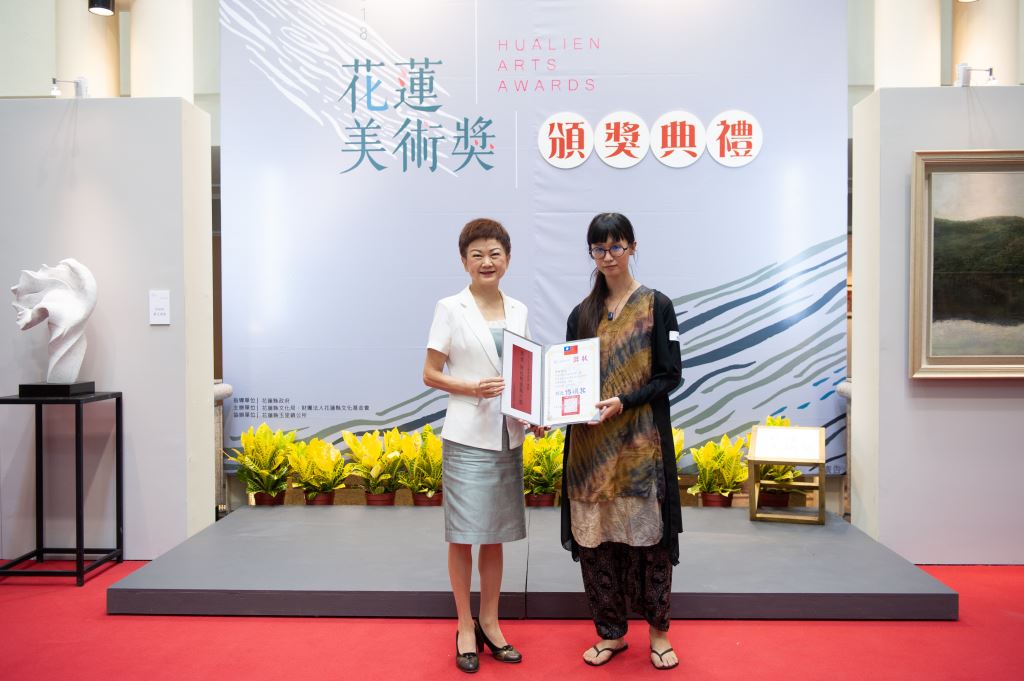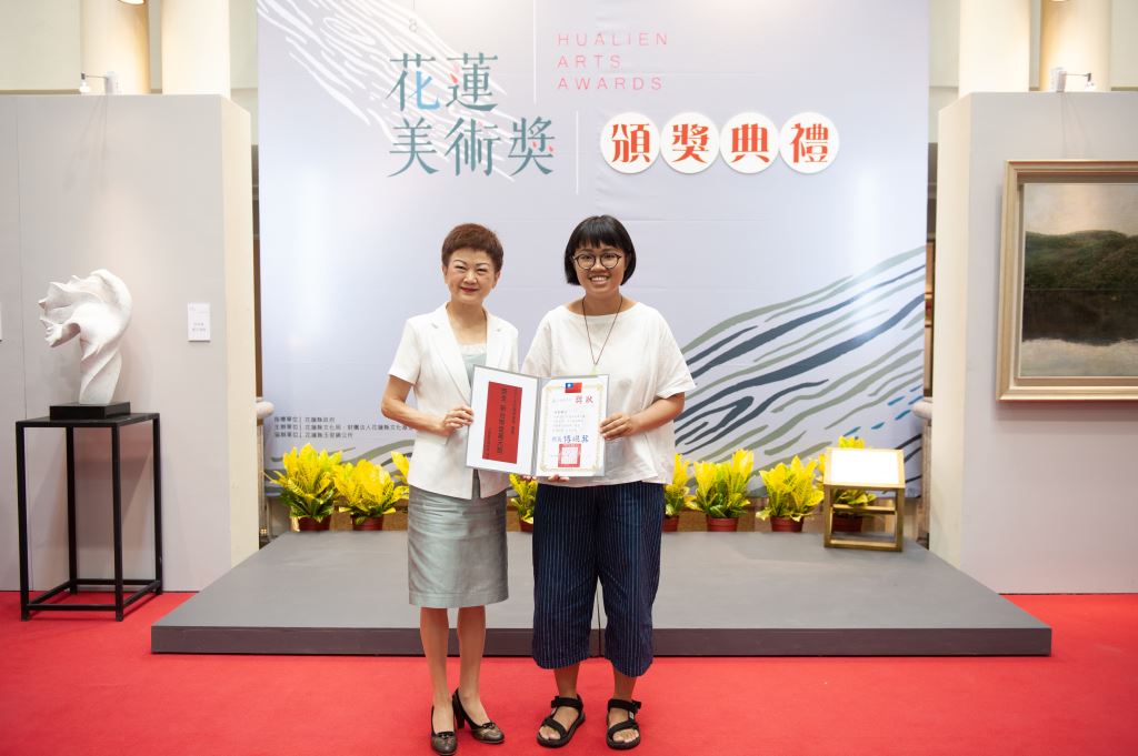 立體造型花蓮獎得主邱裕欽太太代為領獎